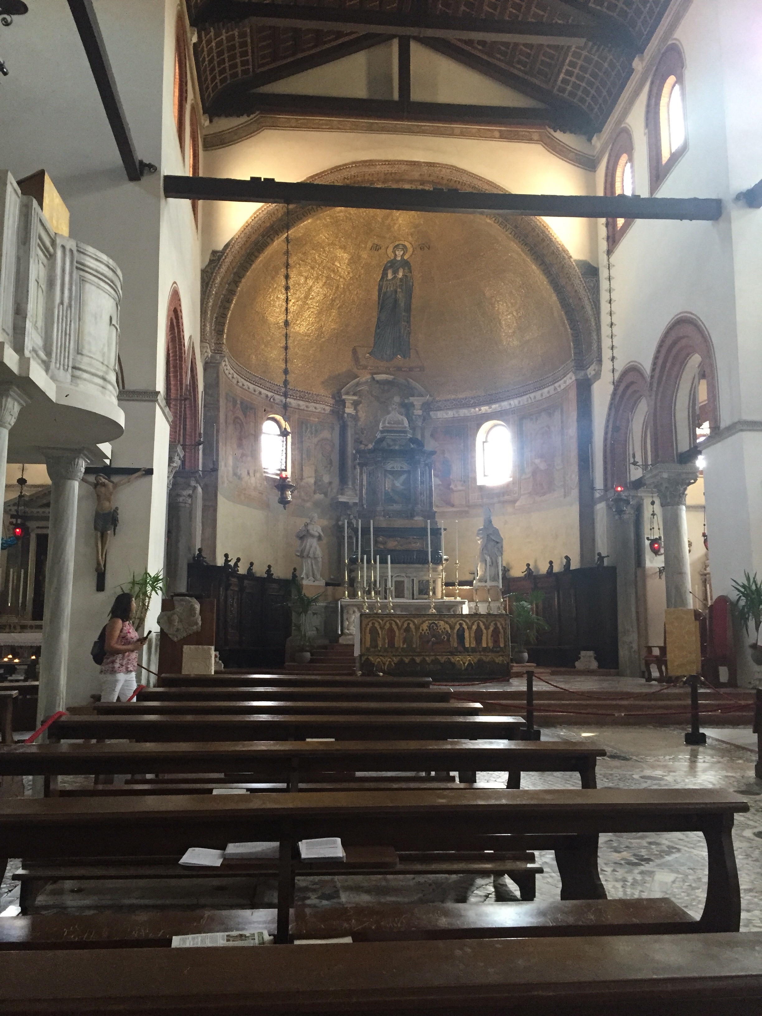 As well as the Murano glass there are a couple of churches to go into, the Basilica dei Santi Maria e Donato was certainly a contradiction. It looks really simple on the outside but inside there is the most amazing mosaic floor, which is being repaired by hand. It is pretty special, the floor was laid in about 1140 with the mosaic dome dating back to the 12th century.