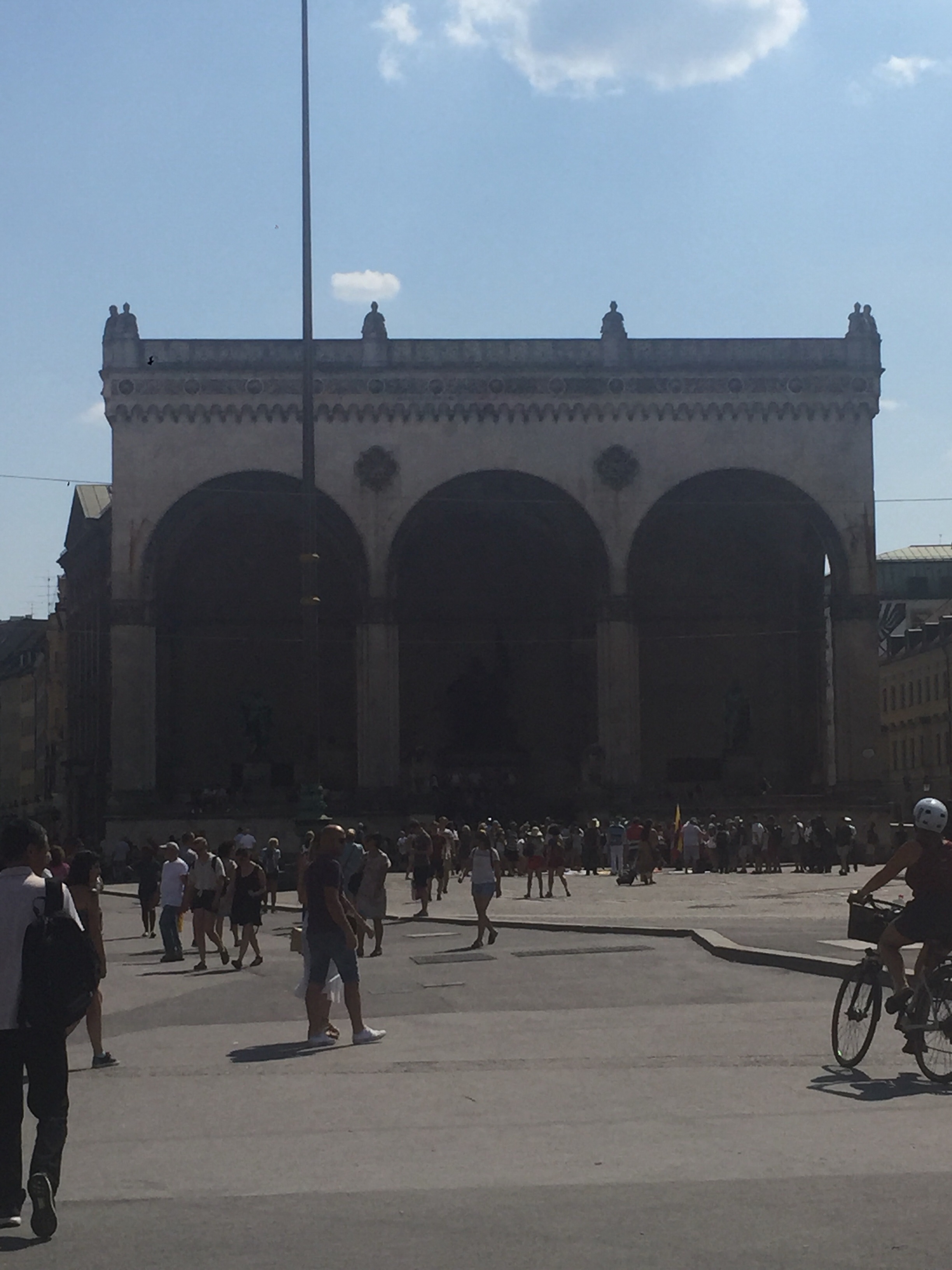 Our next stop was to be the Munich Residence however on the way we went past the Odeonsplatz. This is a big square and was initially designed as an entrance piece to the Royal residence. This square was traditionally used for parades and public events. In 1923 there was a Nazi march here where four police officers were killed and 16 Nazis. During the period of the Third Reich there was an annual march here and where all passers by where made to honour with the Hitler salute.
