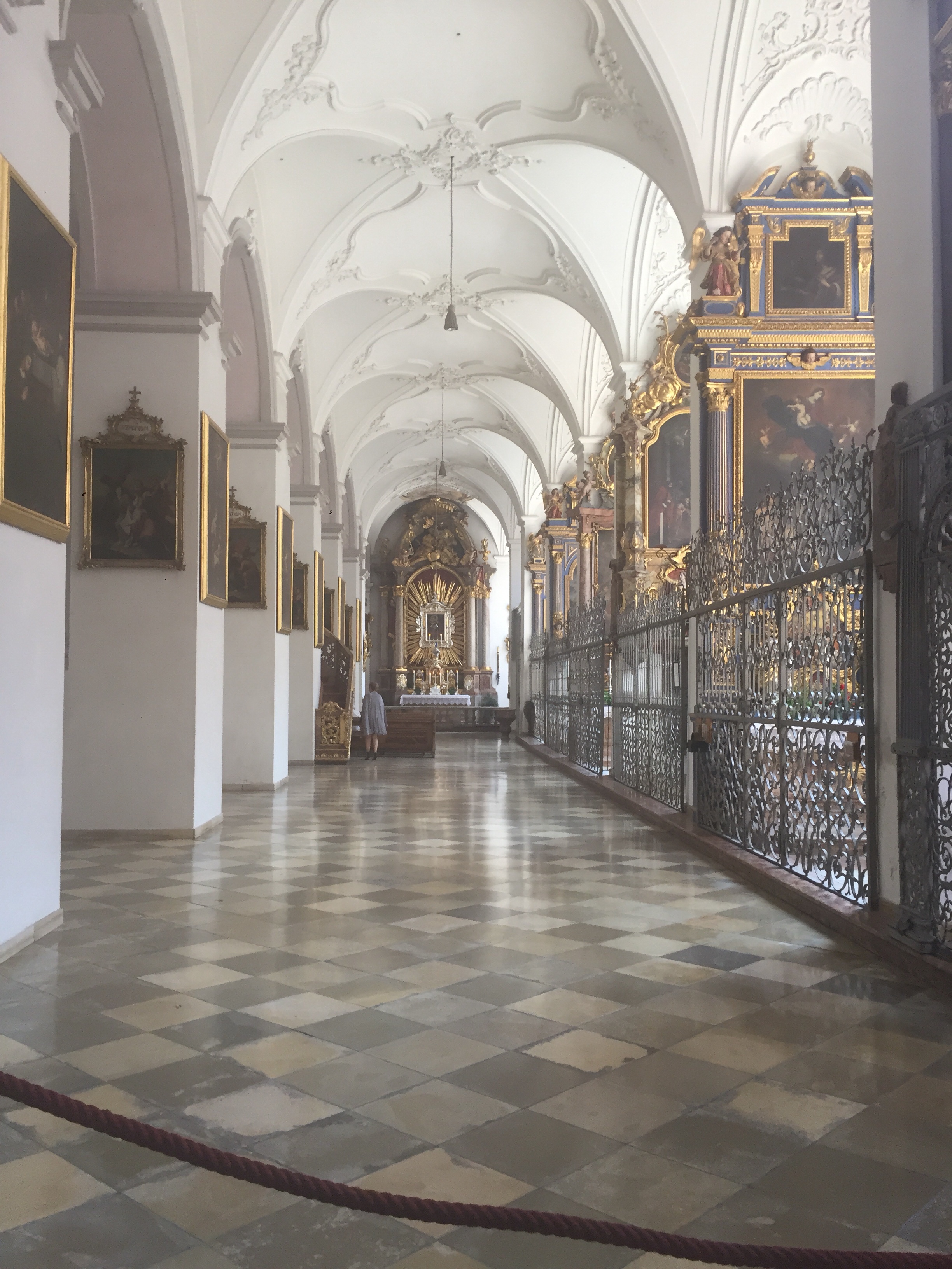 And finally to the Royal Palace in the Munich Residence, it wasn’t a euro today… but that was okay. Before the arrival of the kings of Bavaria (1806 – 1918), the residence was a political and cultural centre from way back in the 1600’s. it is huge place and has an amazing number of beautiful treasures. During each of our visits to residences and museums everywhere there have been many examples of relics that have bones in them and this palace is no different. It’s a bit creepy but apparently there are a number of “first class relics” here which means that the contain the physical remains of a saint or a martyr.. The place is stunning with not all parts of it being bombed by the Allies. We took the audio guide which was great as it gave us the context as so many different people have lived or worked here and put their own spin on things. In the areas that had been destroyed or severely impacted by the bombings the rebuild is acknowledged and is quite simple and tasteful.