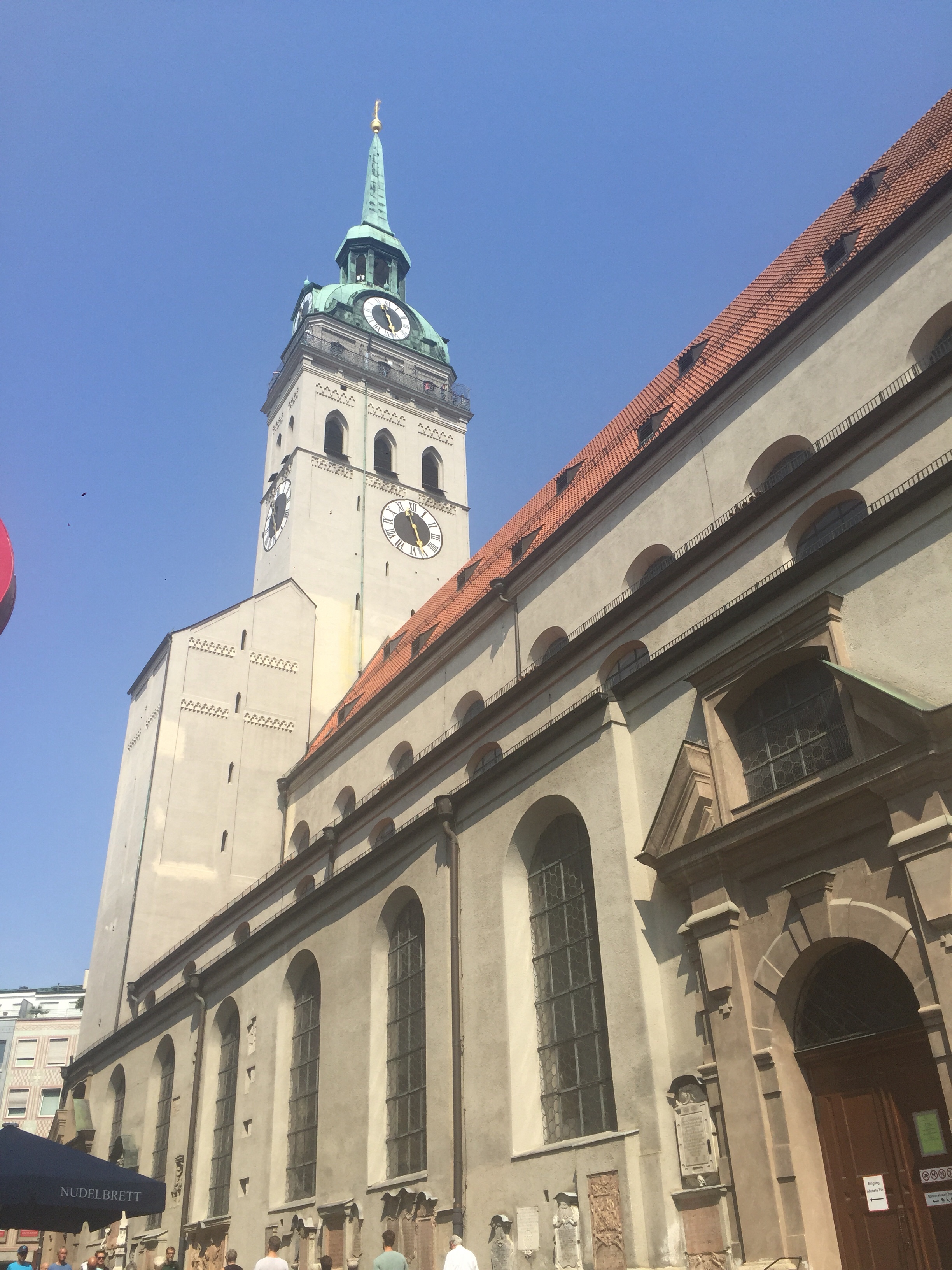 Our first point of call was the beautiful St. Peter’s Church, the first church is this location was in 1158 with monks living around the surrounding areas. We heard a lot about these monks who are fine brewers of beer and the nuns were the brewers of schnapps. One story we heard yesterday was about the year that the monks decided for Lent that they were going to give up beer, but this was way to tough and so it was acceptable to have just one ale a day. All of those years giving up chocolate…ah I should have lived in Munich!