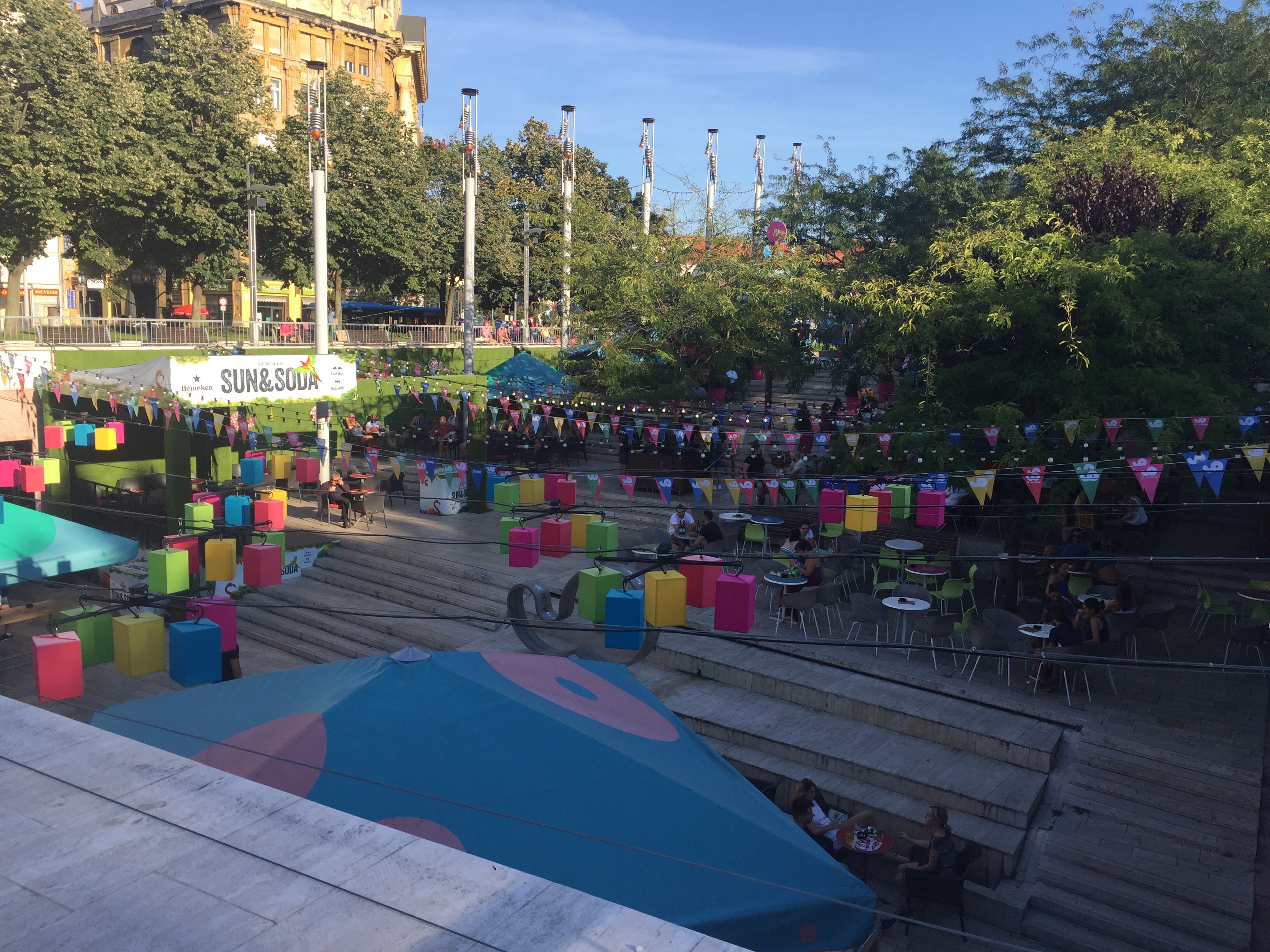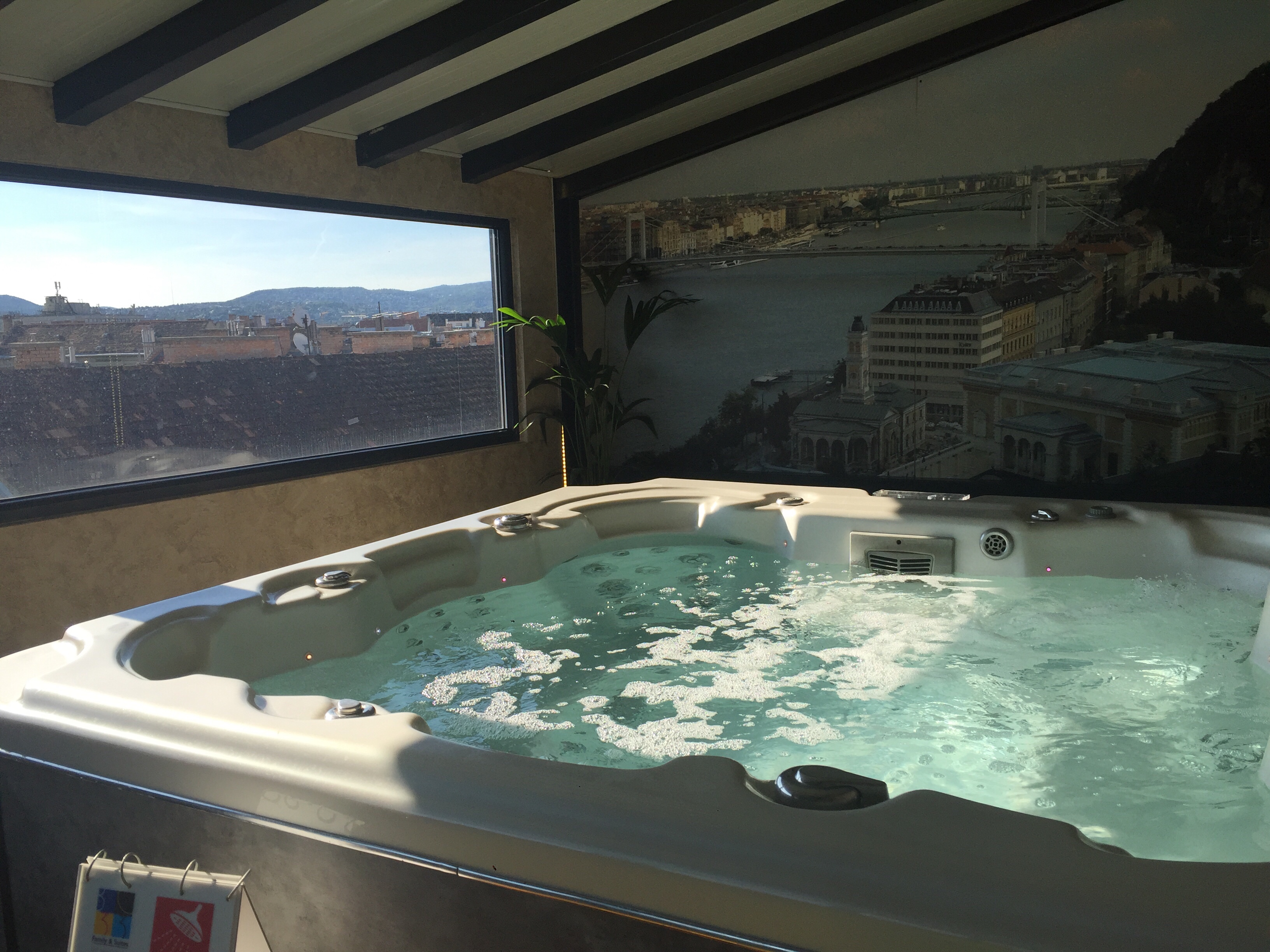 Budapest has a real hip feel to it, it just feels so young and vibrant. The hotel we are staying – the Bo33 has a boutique feel about it with complimentary lemonade, coffee and croissants always on hand. The homemade lemonade is really yummy, so that whilst you are playing the complimentary PlayStation near the foyer you can remain hydrated 😀. On the top floor of the hotel as well as a spa (i.e place to get a massage) there is a jacuzzi that looks over Budapest.