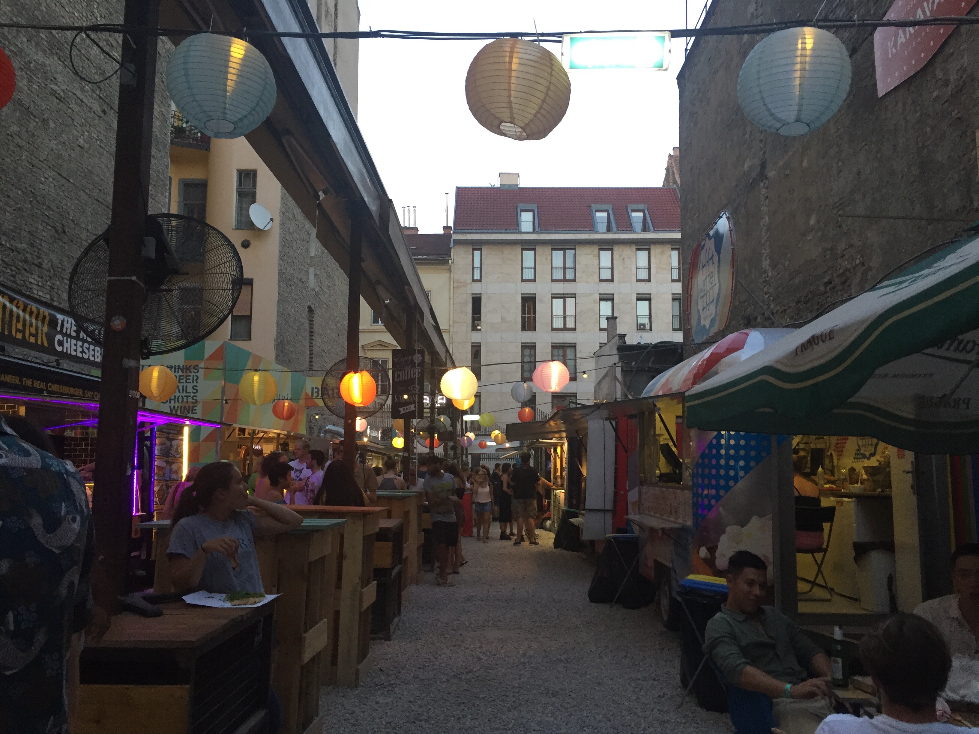 We stumbled across a lane on the way back to our hotel where there were heaps of caravans serving different kinds of food and Hungarian beer, it was fab. It was really like the Hamlet that was in Canberra in Lonsdale Street. Steve had goulash and I had pulled pork, as well as a beer ( this is why we walk rather than take the bus ) amongst people just like us from all over the world reminding themselves how lucky they are to being having these experiences.