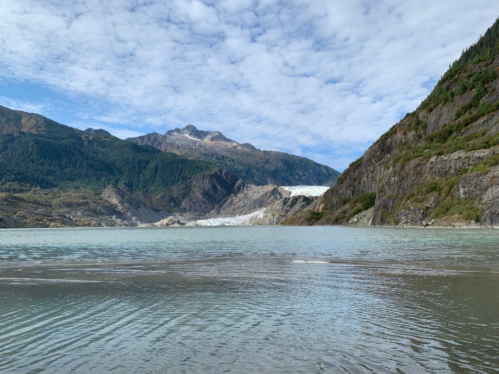 We had decided not to book anything through the ship for this port and so hopped on a bus that would take us to the Mendenhall Glacier. The bus driver took the one highway in Juneau to get us there. The Mendenhall Glacier is the worlds largest glacier that is accessible by road noting of course that the town itself can’t be accessed by road. Yep I’m loving the quirkiness of this place. The Glacier sits alongside (well kinda) a beautiful waterfall within a government protected recreational area.