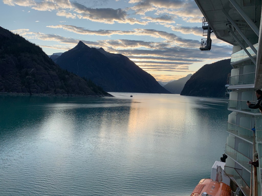 On our return from our Ketchikan adventures we sat on our balcony as the fog came in always on the alert for a passing whale or dolphin which unfortunately for me didn’t eventuate. But hey that’s okay because our alarms were set for the early morning wake up call as we went further into the Inside Passage and our first glimpses of the Dawes Glacier.