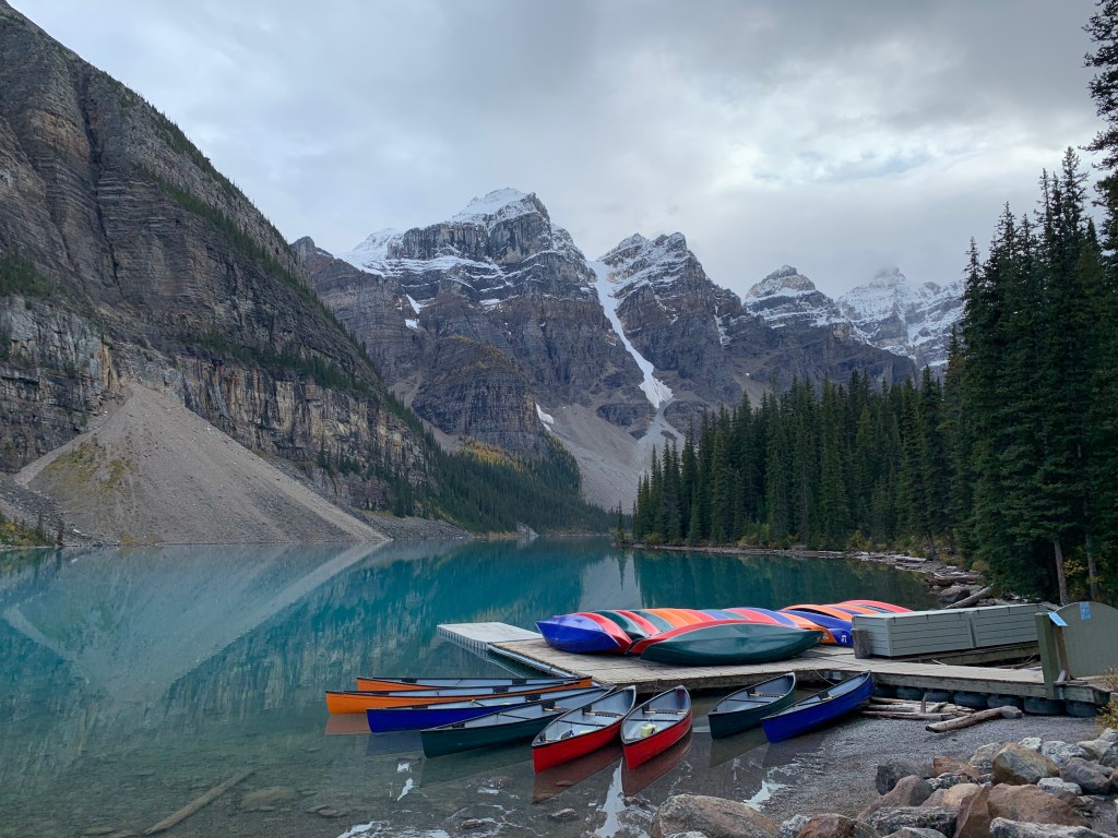 Quick drop off at the hotel and then a drive to Moraine Lake. Bear in mind that this lake is described as grand and gloomy. Adventurer Samuel Allen First came here in 1894 and apparently was suitably impressed yet he said.