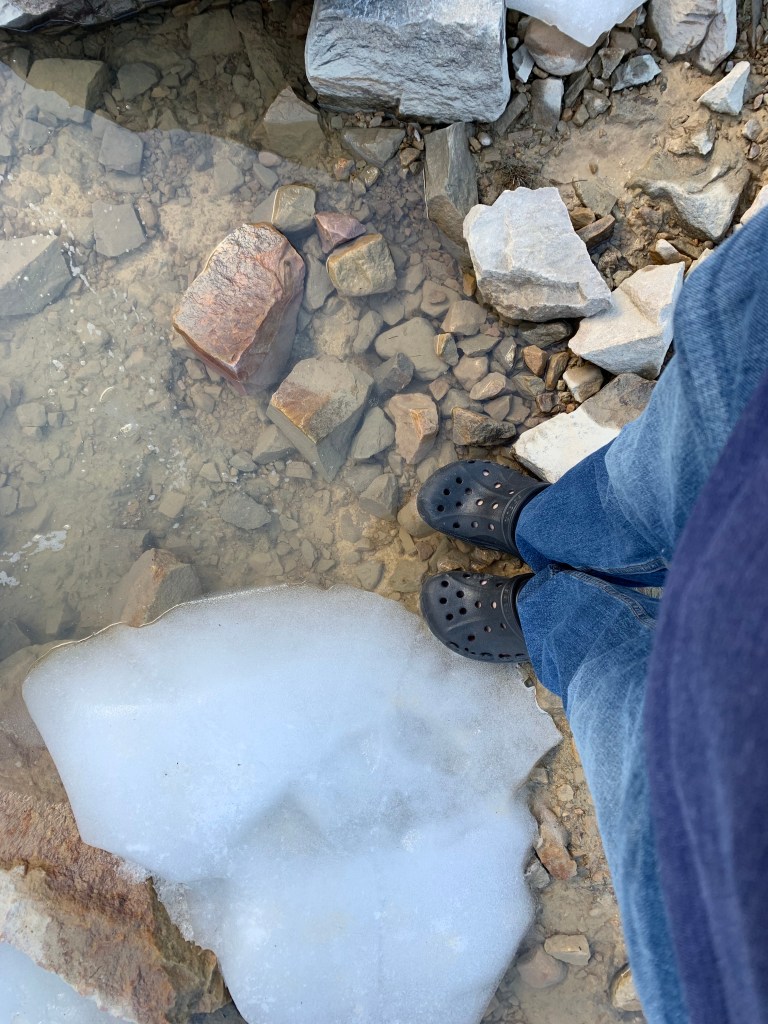 From here we headed to Mount Edith where Steve and his crocs were going to get up close and personal with a glacier. This mountain was named after a British nurse who was executed during the First World War for helping allied prisoners escape from Brussels. Aren’t some people extraordinary.