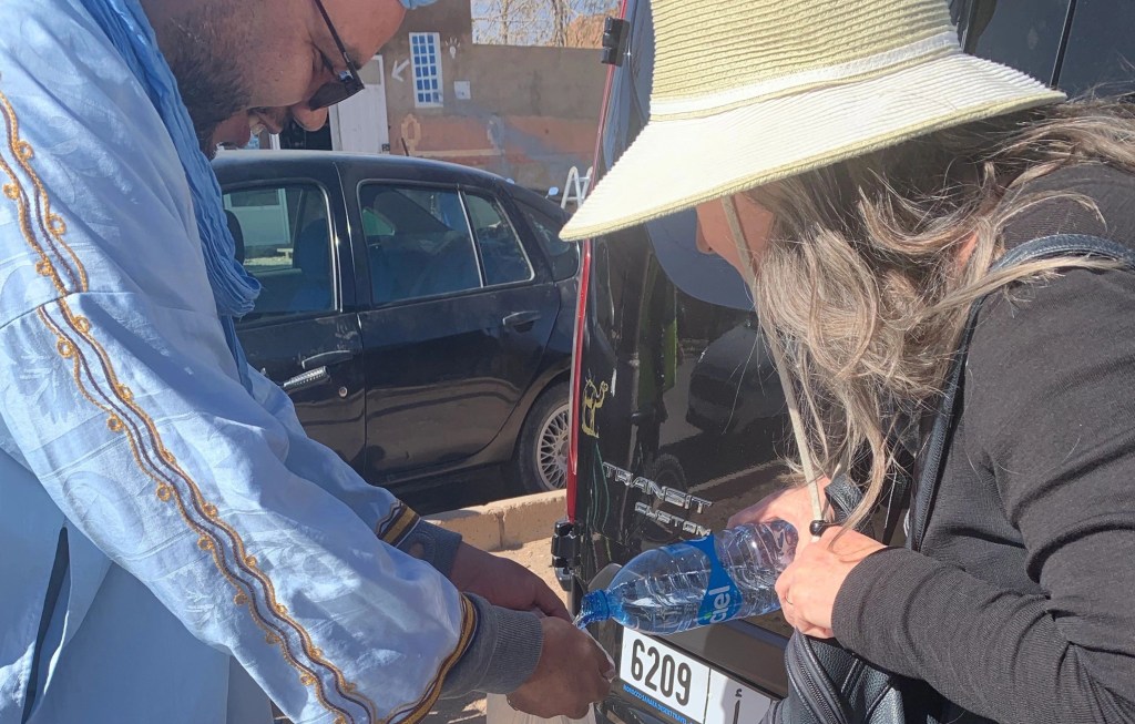 One of the things we’ve noticed most about Morocco is that the people here are genuinely beautiful and gentle, and that they are passionate about their Sahara. This message is emblazoned on signs and fields in the Berber language.