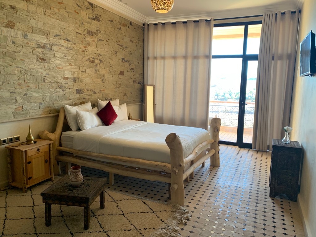 Tonight we are staying at the relatively new Yu Palace Hotel and Kasbah when you arrive at the hotel you are very surprised as it is in a somewhat undeveloped area of Tarmigt. It is truly beautiful with 12 suites each with a different theme, we stayed in the Olympus room.