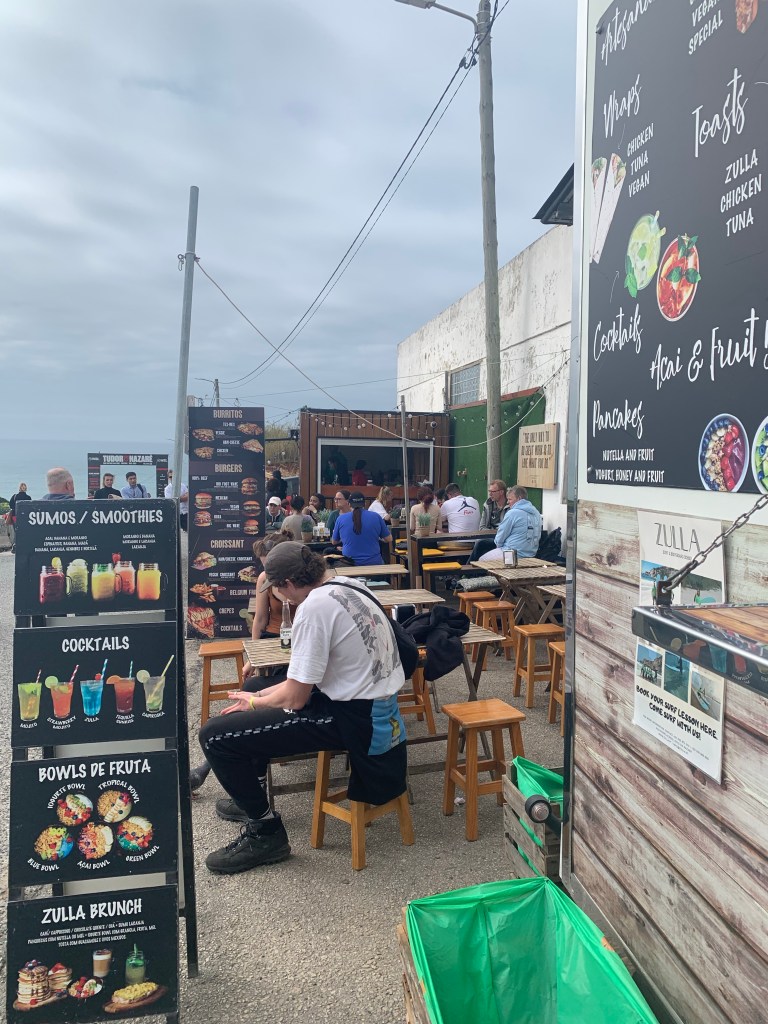 There was a real buzz around the place even though it wasn’t a big wave day, and so it is very easy to imagine the place jam packed in summer with people from all over the world coming to the beach and hoping to say they conquered the waves here. We ate lunch overlooking the beach at some permanent caravan type food places, the food was great and as I said the vibe relaxed and friendly.