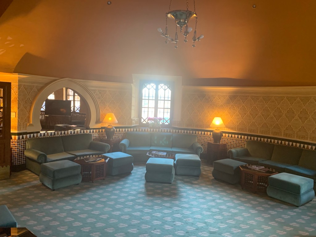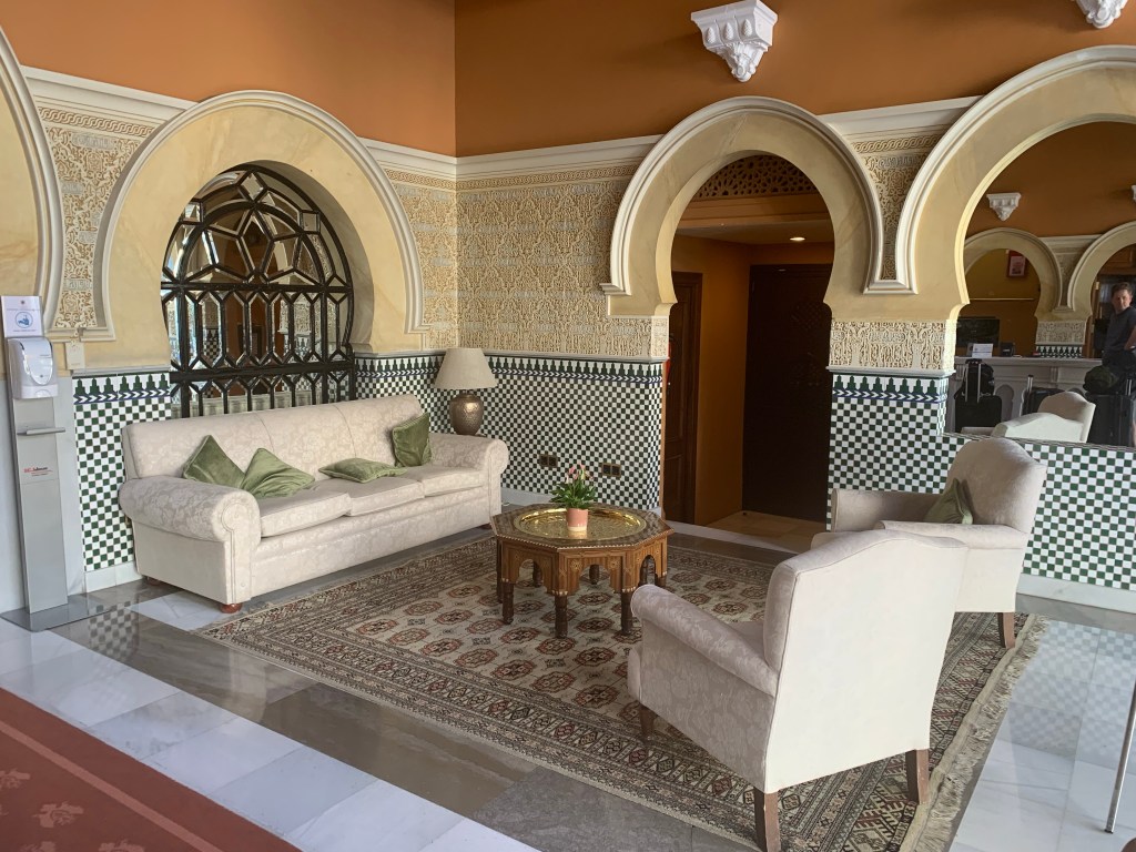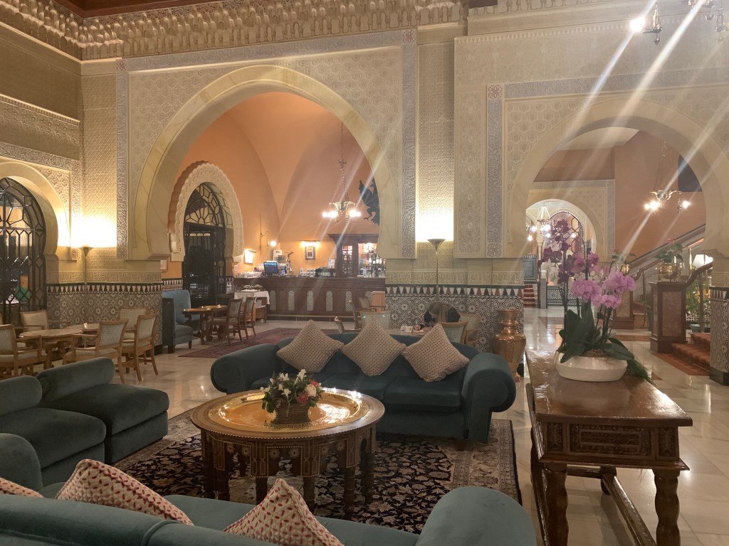 We are staying up on a hill overlooking the city at the Alhambra Palace Hotel . The hotel was built in 1910 and as well as being a lovely hotel it was used as a hospital during the Spanish Civil War.