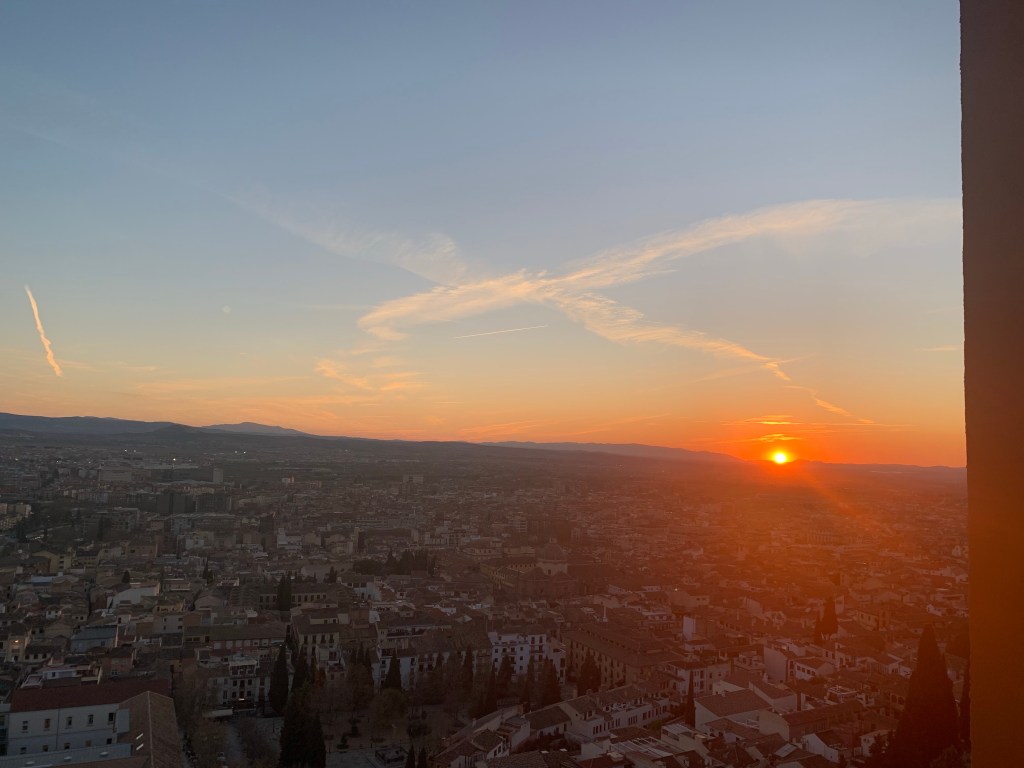 The dawn in the sky greets the day with a sigh for Granada, For she can remember the splendour that once was Granada, It still can be found in the hills all around as I wander along, Entranced by the beauty before me, Entranced by a land full of flowers and song”