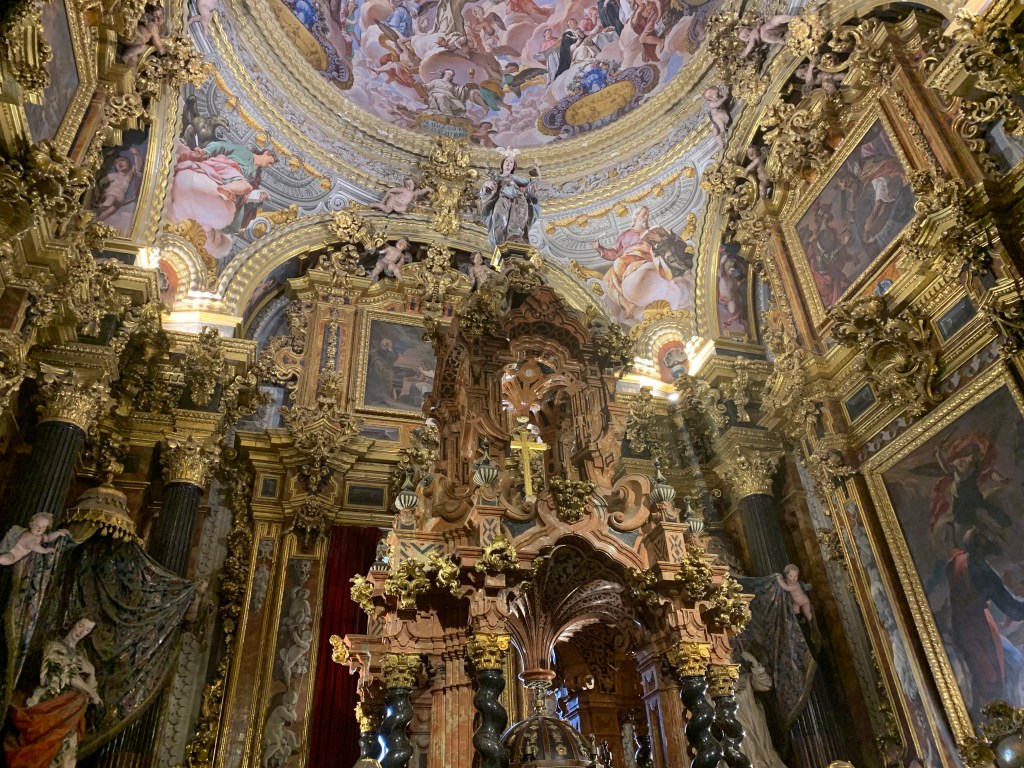 The church and side chapel are very grand with some unusual pieces. Lots of gold and colour in paintings and in the marble continue, and of course the beautiful tiling.