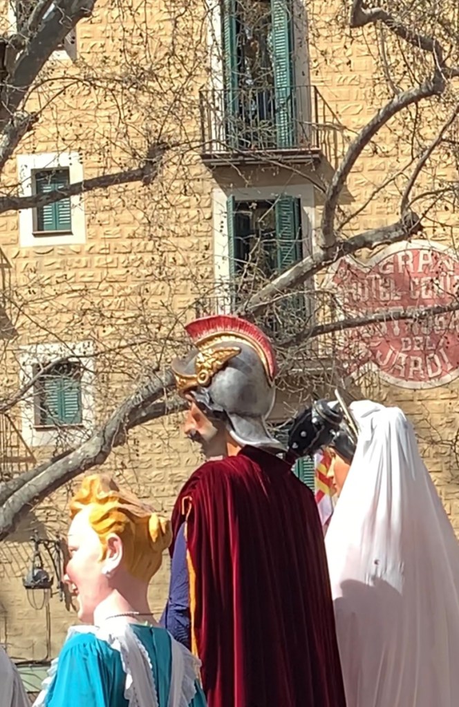This was the first surprise Giants and Big Heads. There is an annual festival called Festes de la Merce in September (we are here in March) each year so it wasn’t that but it was some sort of street parade, with people singing and dancing and the giants certainly getting into the action. At the end of the parade there were even fireworks 💥.