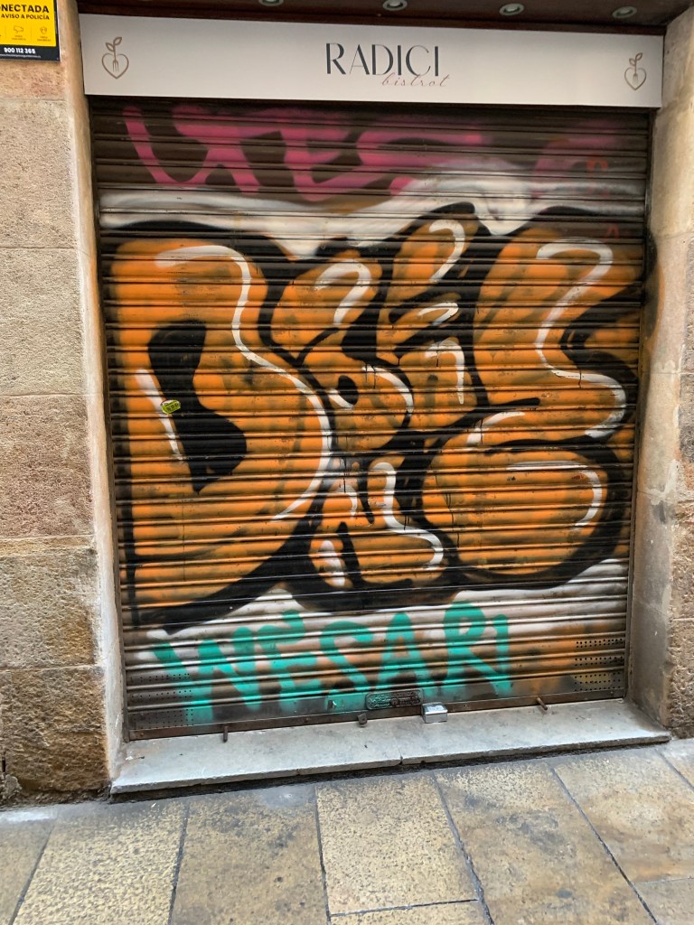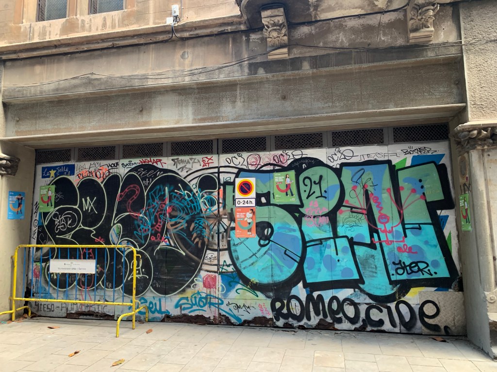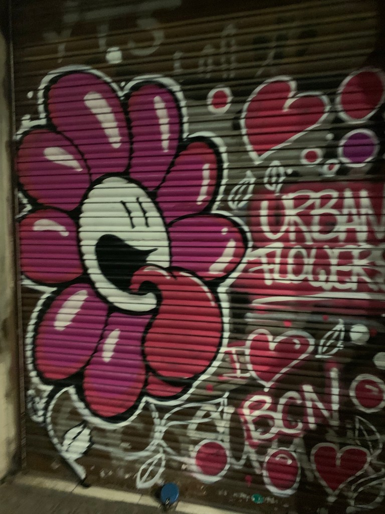That’s the things about Barcelona it is such a wonderful mix of modern, old and ancient. Here are a few examples of the street – magic. You can actually do a street art and graffiti tour here, but I don’t think we have time, which is a real shame.