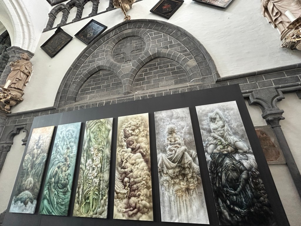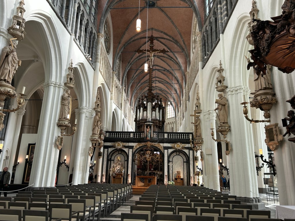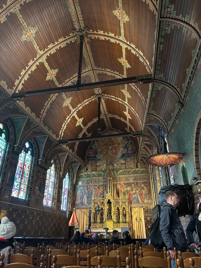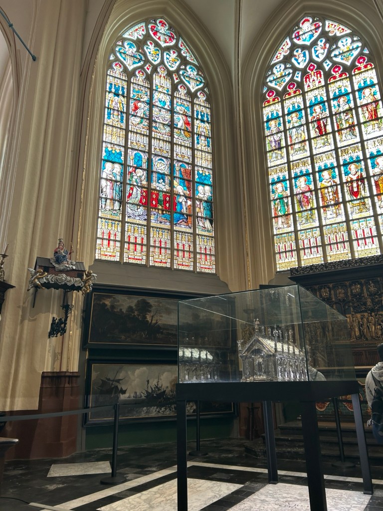 Our first stop is at the Church of Our Lady, a Roman Catholic Church which dates back to the 1270’s. It it the tallest structure in Bruges. You can buy tickets into an exhibition and museum in this Church. We decided not to as we have a busy day. It was lovely to walk through and had some really interesting artwork.