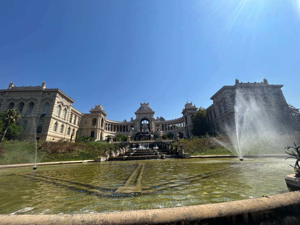 Our first stop for the day is Le Palais Longchamp was built to celebrate the construction of the Canal de Marseille which was built to bring water from the river to the township. It is actually quite an impressive structure to behold. You can walk right up to the top and the outlook is pretty amazing, my little phone camera doesn’t do it justice.