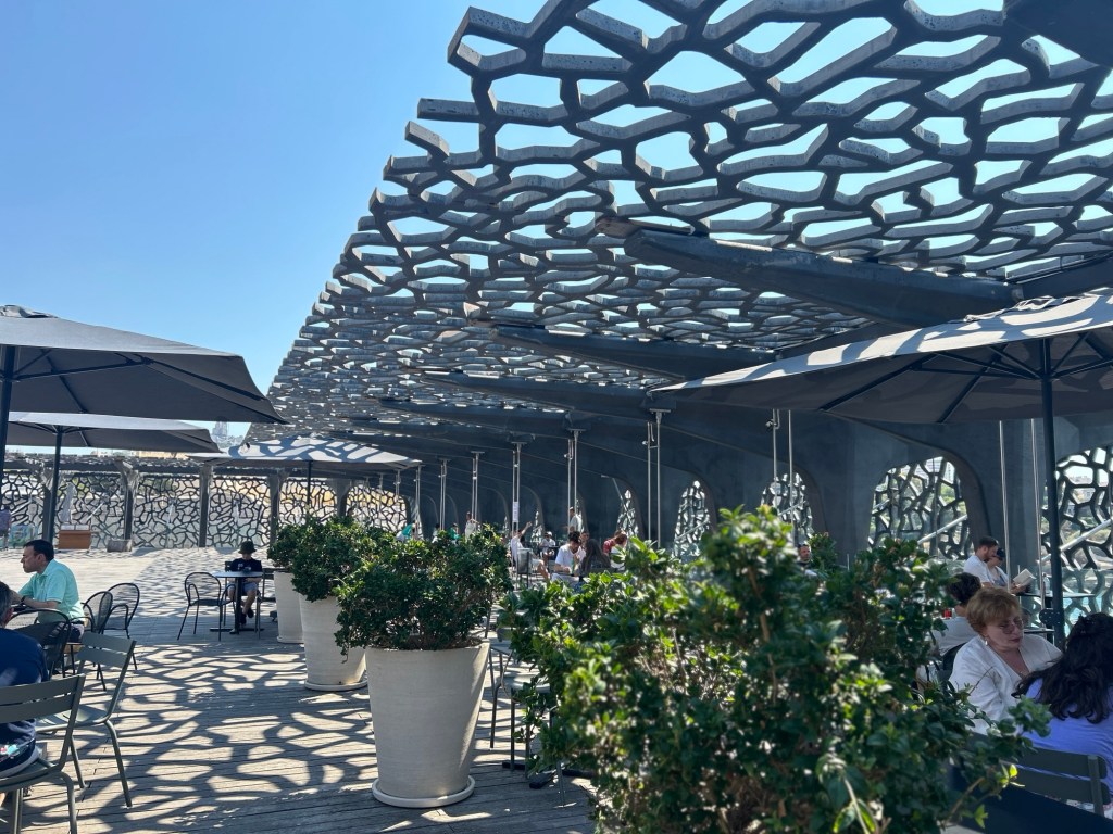 We’re then off to the Mucem museum, which is a few minutes walk just down we enter at the port entrance. You can go in here for free to see the building, however if you want to see the new exhibits there is a charge.