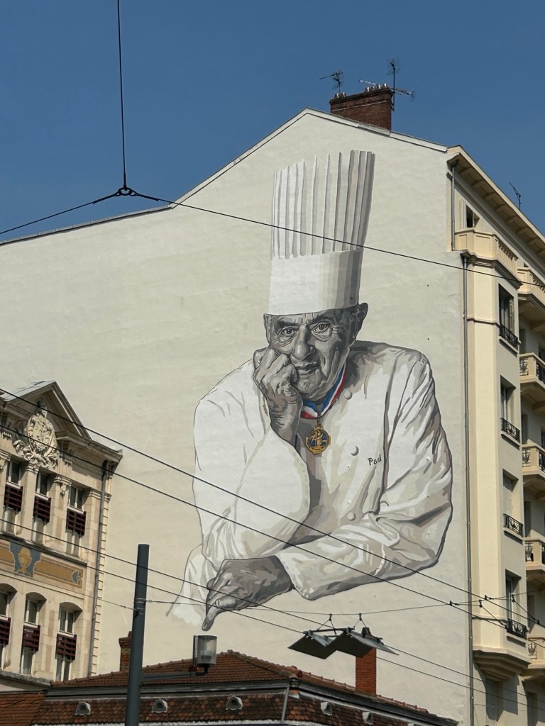 As I am walking back to our hotel the side of a building had this picture of the famous French chef Paul Bocuse on it. The town is obviously very proud and rightly so.